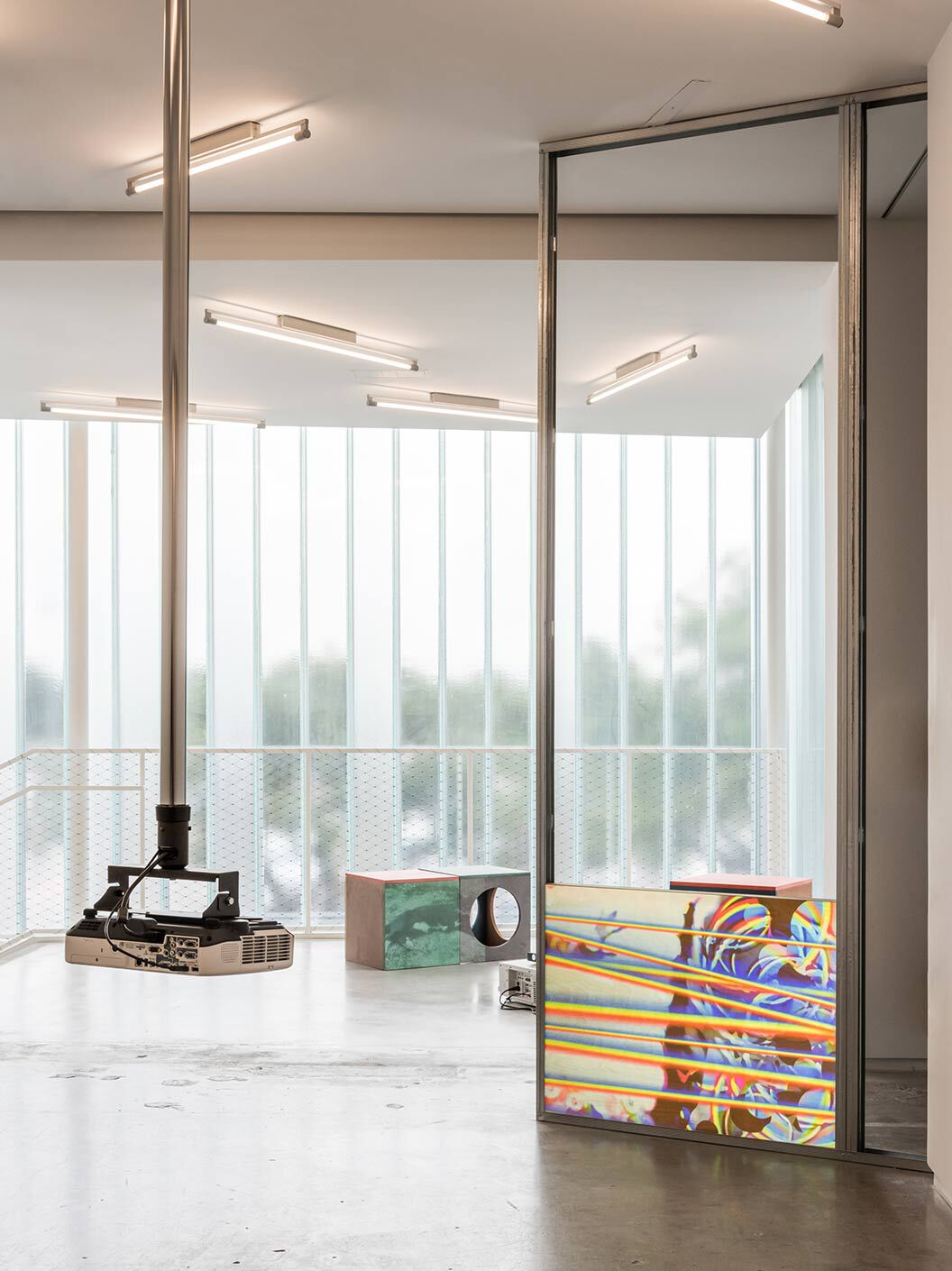 For Art Basel Miami Beach 2019, the LOEWE FOUNDATION presents the fifth exhibition in our Chance Encounters series, bringing together artists from various disciplines in unexpected conversations. This year British artist Hilary Lloyd presents a major site-specific textile, sound and video installation that will engage in dialogue with the monumental 18th-century Portuguese granary that’s permanently installed in the Miami store. In and amongst Lloyd’s installation are several large-scale ceramic sculptures by pioneering British sculptor Ewen Henderson.