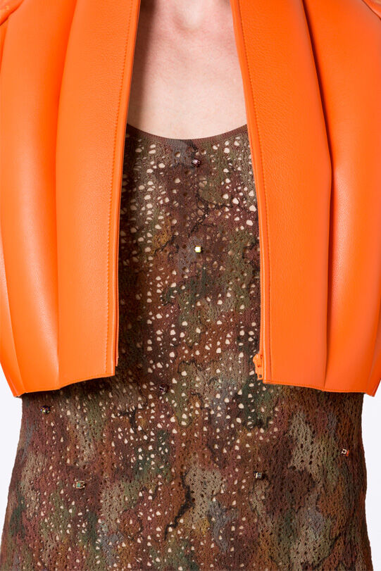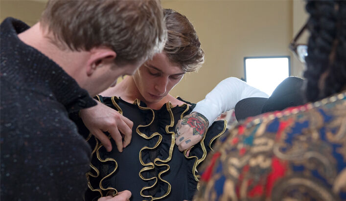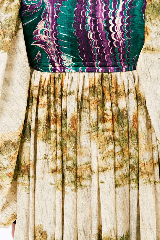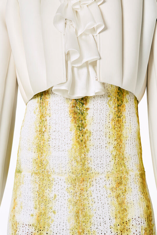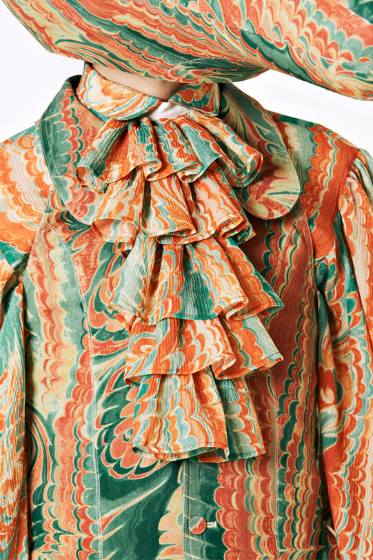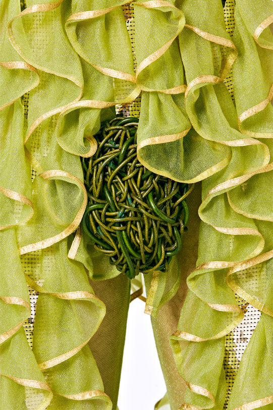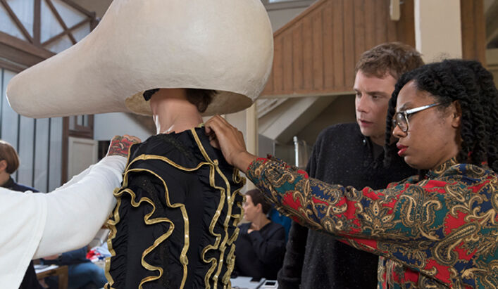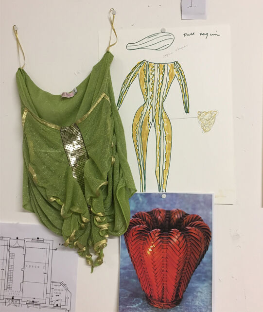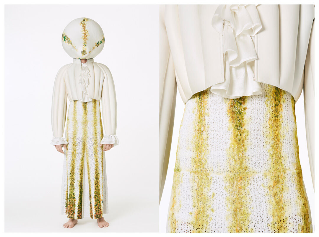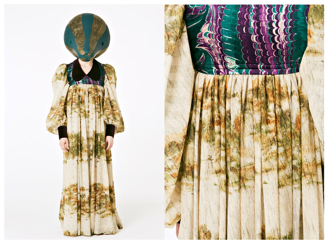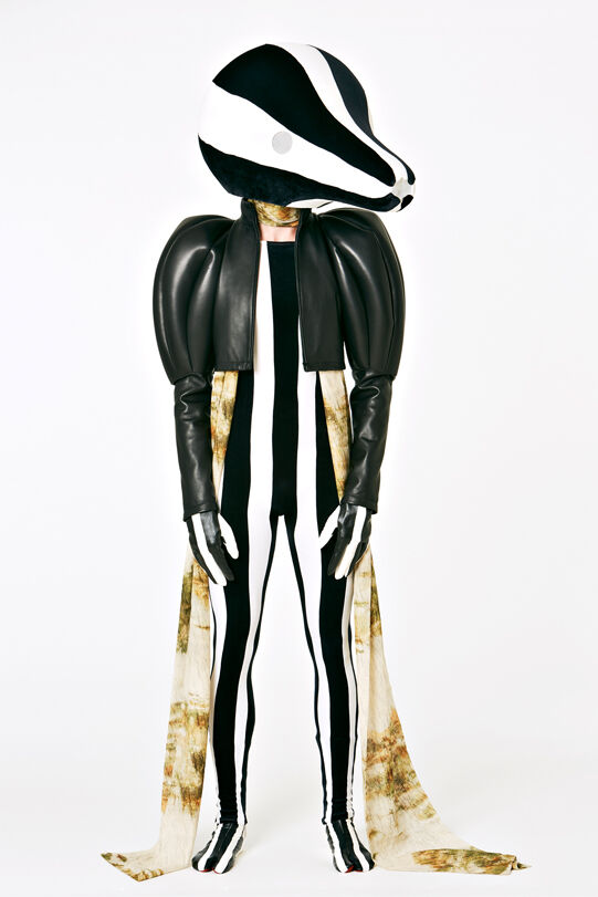 Hamilton has designed seven costumes in collaboration with LOEWE Creative Director Jonathan Anderson that incorporate the colours and shapes of varieties of squash or pumpkin. The squash inspired the organic textures of the costumes and heads, that range from hand painted leather to printed silk crepon, while 1970s clothing references shaped some of the silhouettes. Performers will select a costume each day, informing and reflecting their individual presentation of the character as they inhabit the space.