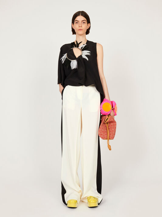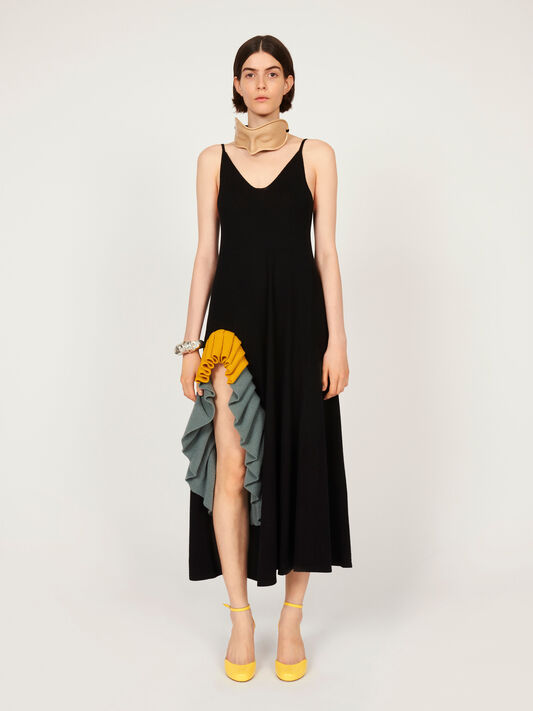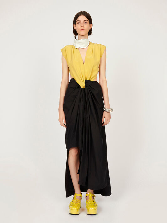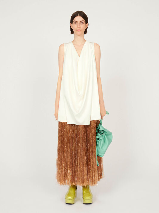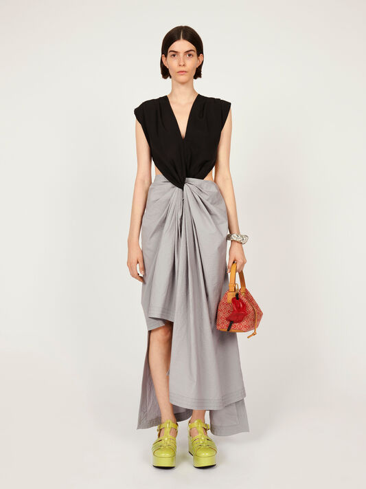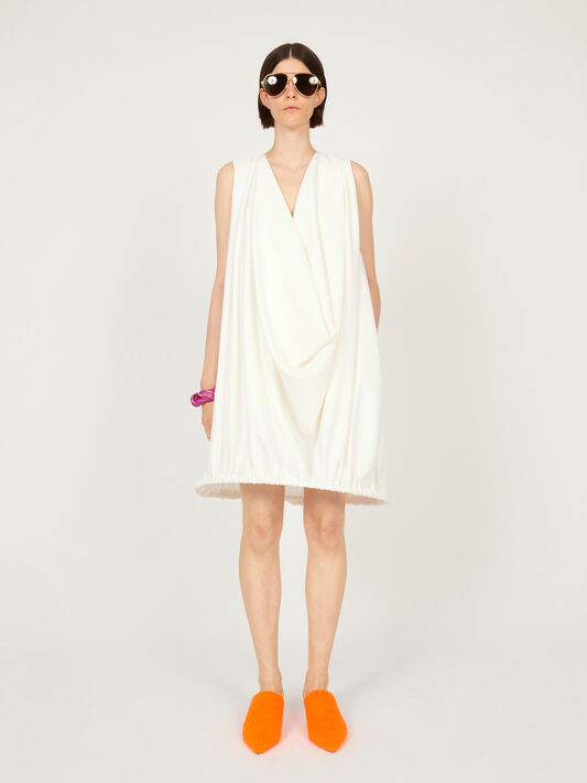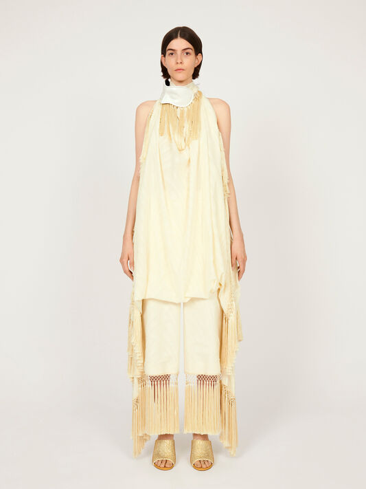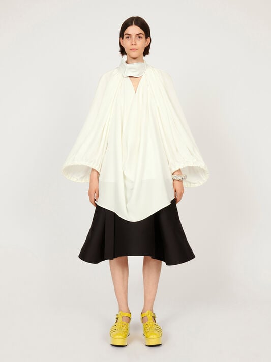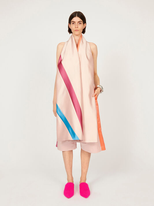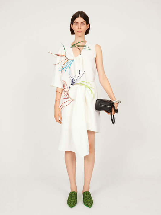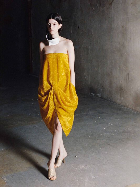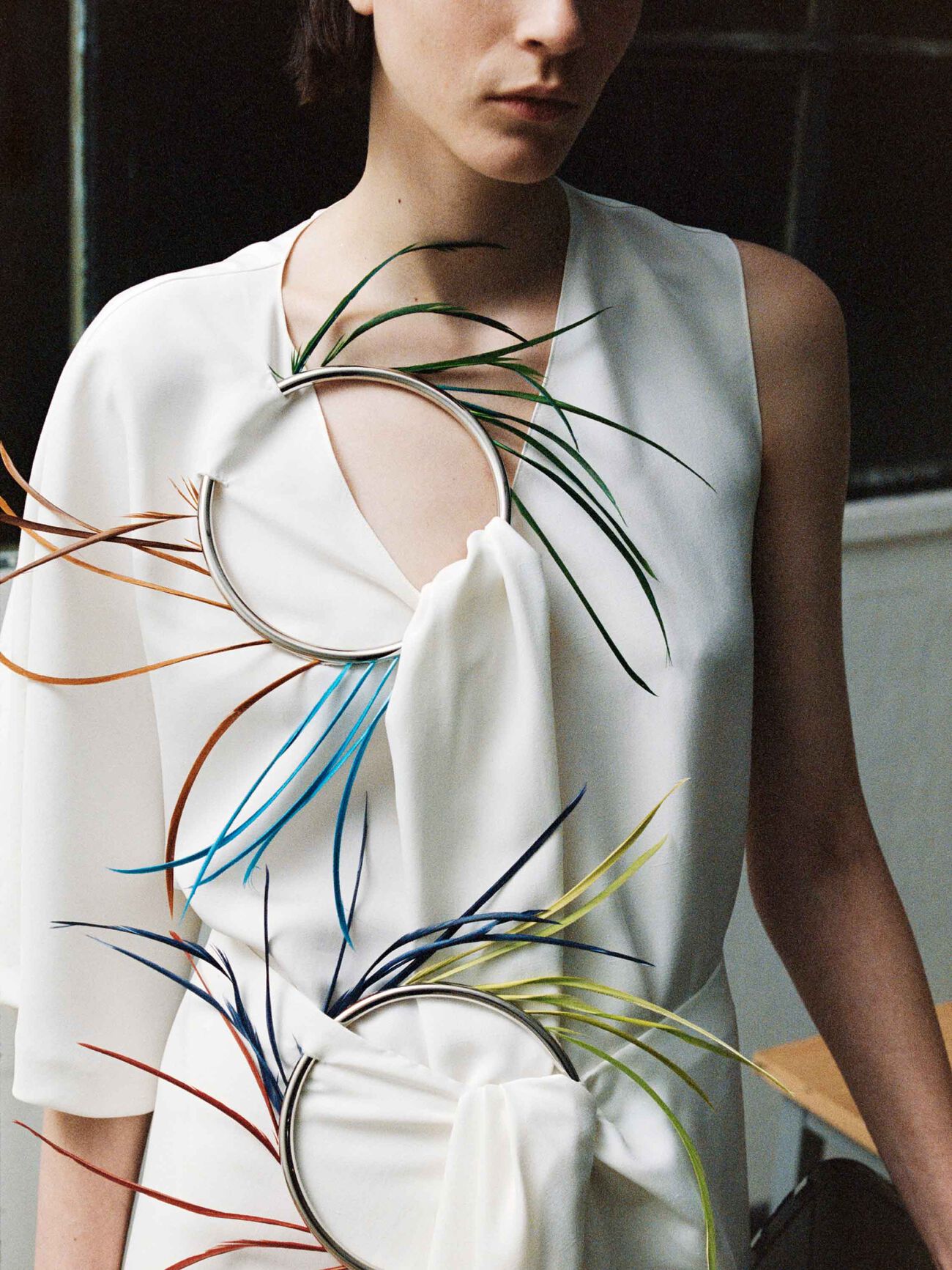 Abstract shapes and daring volumes are draped, gathered and fringed, conveying fluid movement and a fresh sense of ease.