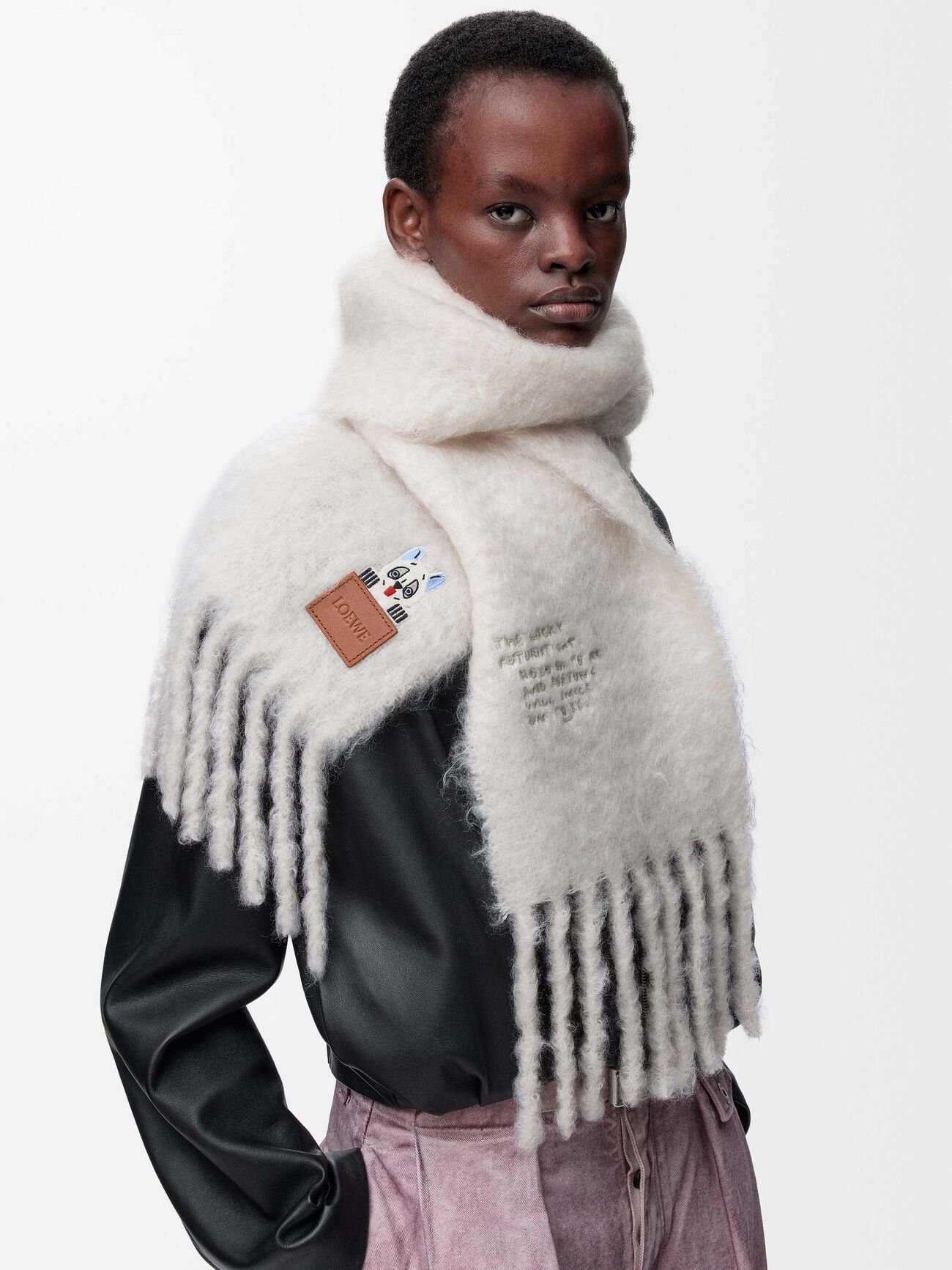 LOEWE’s luxury collection of scarves for women features a range of plain and patterned scarves, including the house’s iconic Anagram, with new designs launched each season. Scarves are available in silk as well as wool, mohair and cashmere.