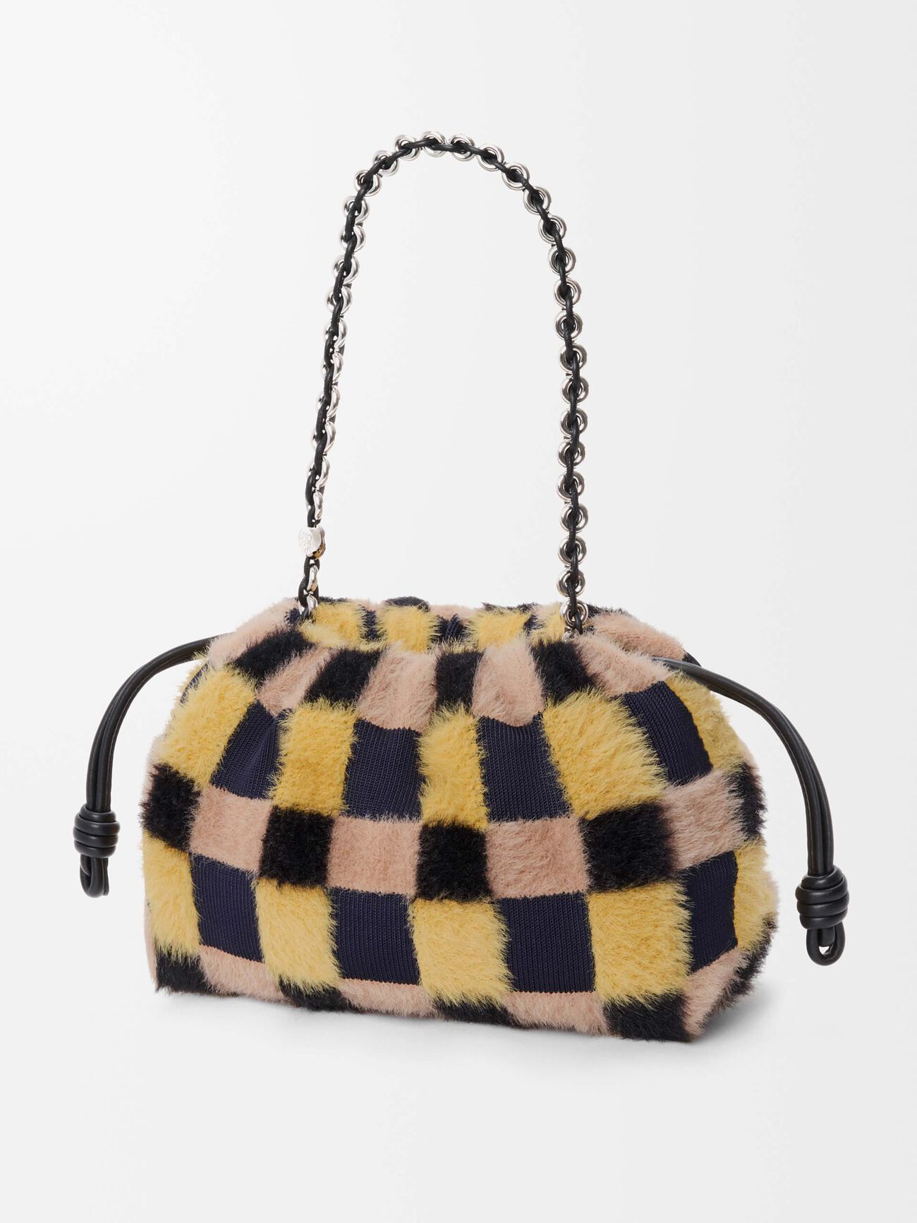 Futurist Cat small Puzzle bag in embroidered knit and classic calfskin