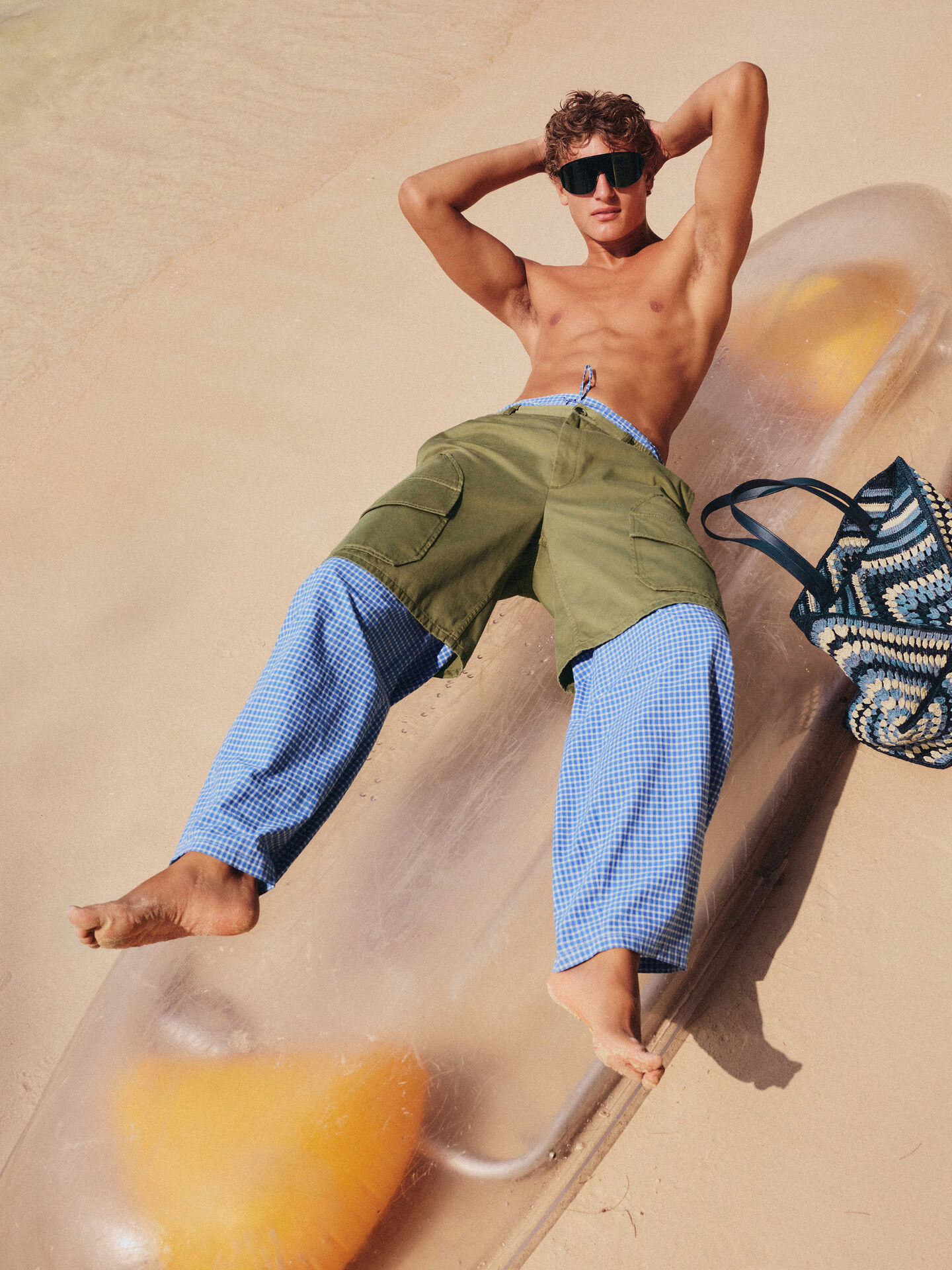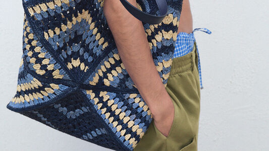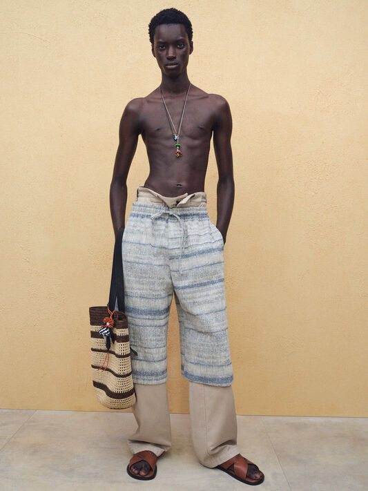 Bolso Puzzle Fold tote mediano en rafia y piel de ternera