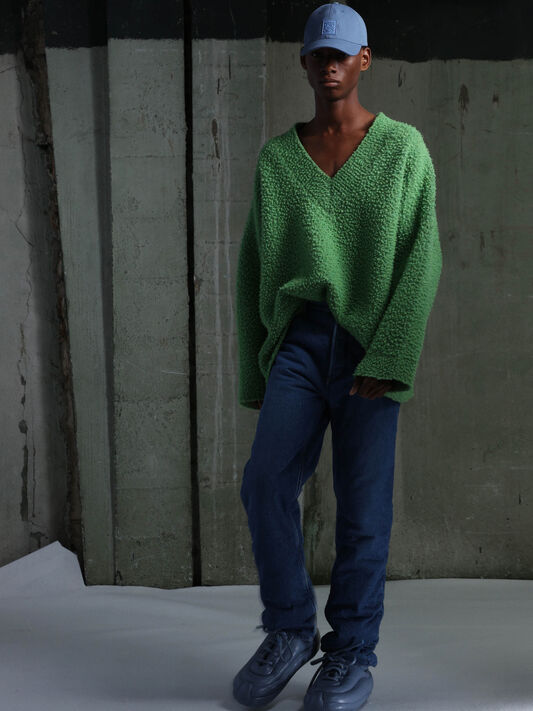 Shapes are reduced to standard archetypes and then inflated, shrunken and sliced. Staples including the bomber, the hoodie, the sweatshirt, the polo and the parka are perfected and worn out. Key pieces are clustered with tech and overgrown with plant-life, a process developed in collaboration with designer Paula Ulargui Escalona.