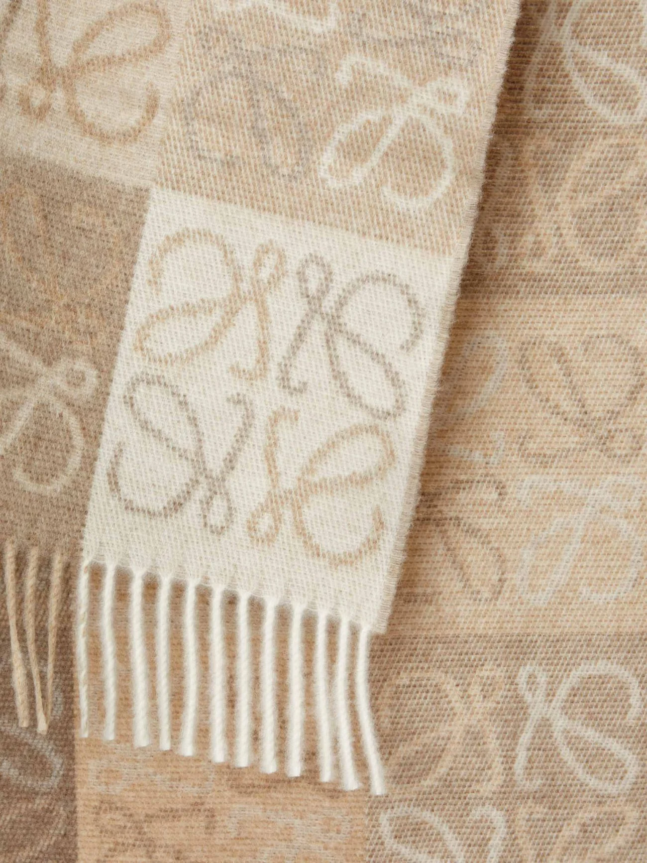 ロエベのモチーフを主役に、幾何学模様をまとったデザイン。ソフトなウールとカシミヤから作られています。