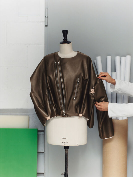 LOEWE の女性用高級レザー既製コレクションは、ナッパレザー、スエード、ウールなどの最高級素材から作られています。アウターウェアには、トレンチコートやパーカーのほか、ボンバージャケット、モーターサイクルジャケット、アビエイタージャケット、象徴的なバルーンジャケットなどがあります。時代を超えたシャツとパンツは、毎シーズン、新しい色合いとディテールでアップデートされます。