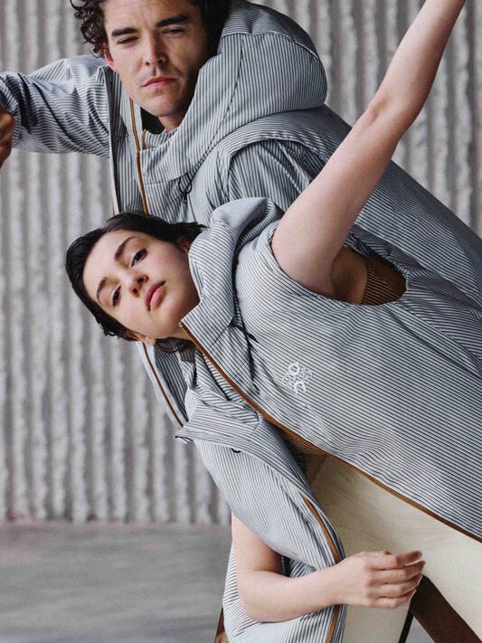 豊かな触れ心地と高機能性が融合する、都市のライフスタイルのために考案されたシルエット。フロック加工のアノラック、カーゴパンツ、定番のアウターウェアが揃います。