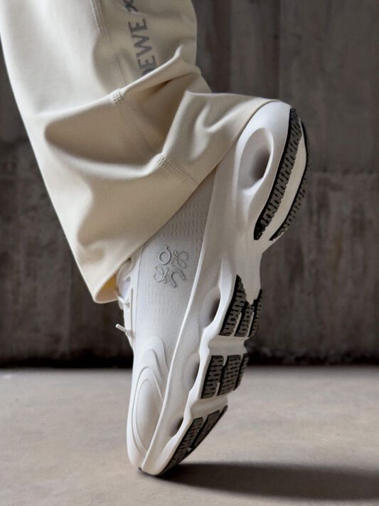 ロエベとOnの象徴的ディテールを組み合わせたクラウドソロは、ヒール部分に単一のクラウドパーツを搭載した初のシューズです。再想像されたスニーカー。スペインのクラフトとスイスのエンジニアリングが融合しています。