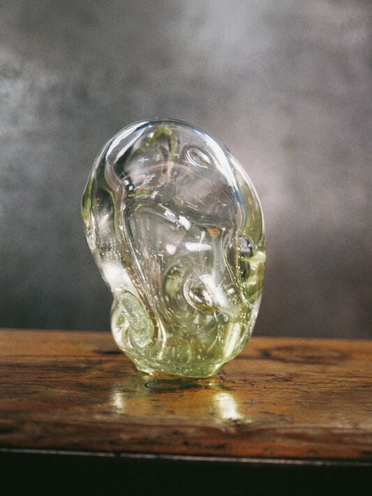 各フレグランスは、本コレクションの芸術性を反映したボトルに収められています。手吹きガラスの有機的な美しさに着想を得た彫刻のようなデザインで、グラナイトのキャップで閉じられています。
