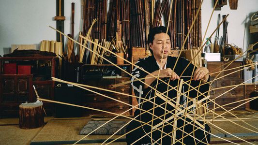 120年にわたり代々竹工芸を営む家に生まれ、竹作家である両親やその弟子たちに囲まれて育った四代田辺竹雲斎にとって、竹は自分のアイデンティティであり、自分と切り離すことのできない素材です。
