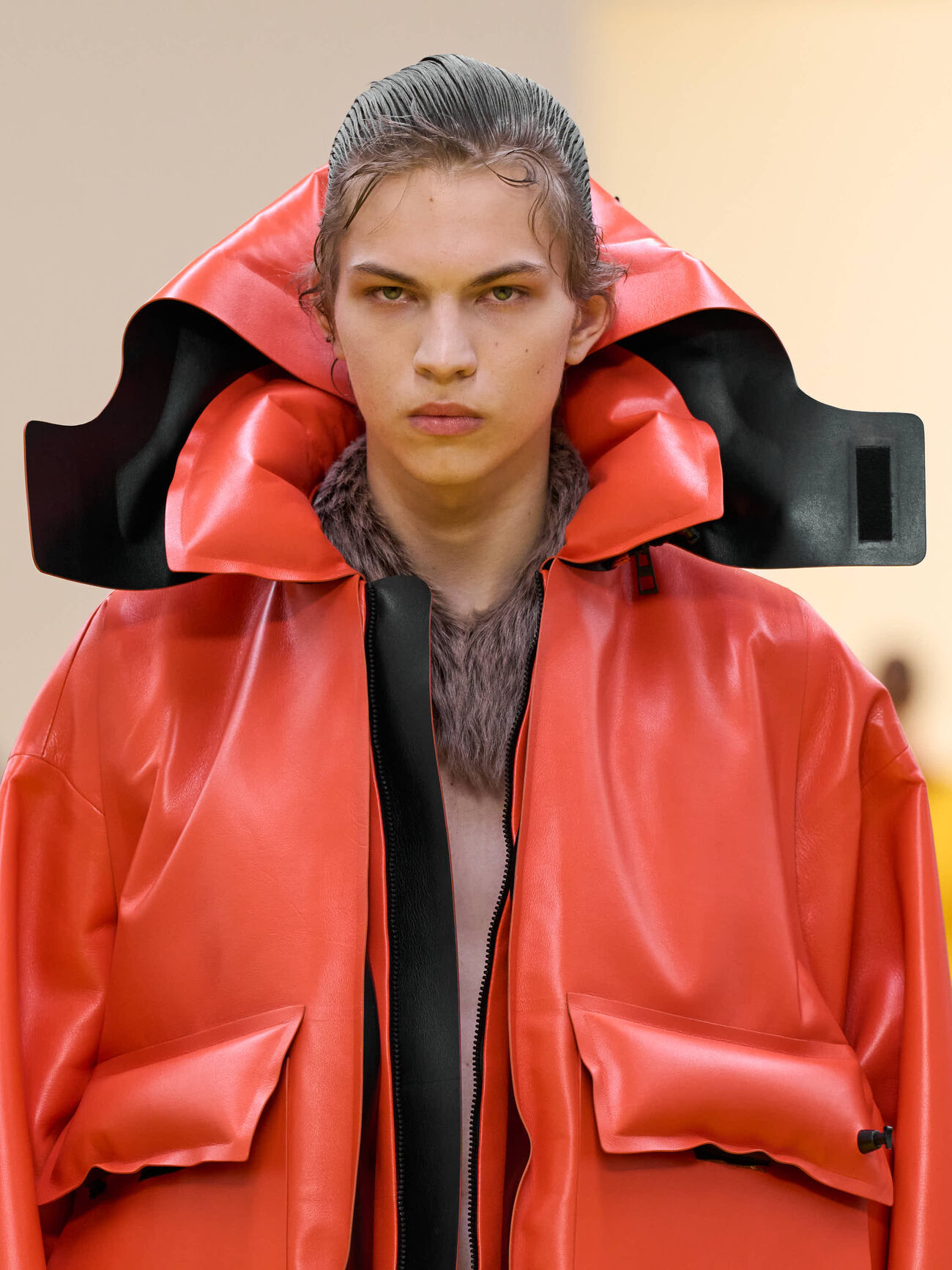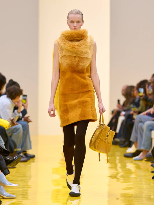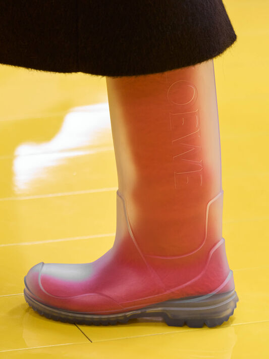 Innovative craft takes shape across the collection: fringed and embroidered leather, shaved and sculpted shearling, and the Storm boots formed through injection-moulding. A closer look reveals the ingenuity of making.