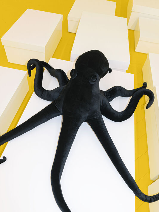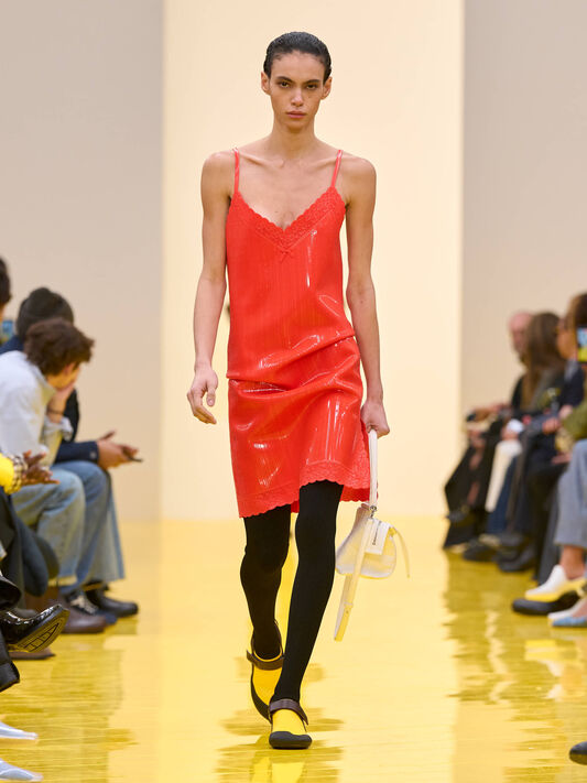 Artworks by the Cologne-based contemporary artist become part of the mise-en-scène inside the show space, and inspire a selection of runway pieces, charms, jewels and accessories.